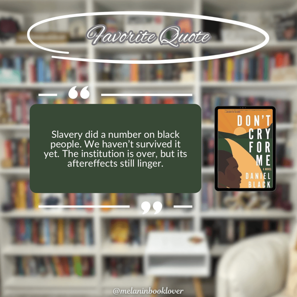 My heart broke for not only Isaac and the struggles he had with his dad accepting his sexuality but also for Jacob and my own ancestors. Jacob truly struggled to accept Isaac being gay and it was so heartbreaking to read about. While I wanted to be mad at Jacob for how he treated his wife and son I couldn’t help but feel bad for him at the same time. You usually get the child’s perspective and their experience with parents who have a hard time accepting their sexuality, but this was from the father’s perspective which was such a unique approach. I love how Daniel was able to draw from the affect’s slavery had on black men, their pain, struggles, and lack of acceptance as they just tried to survive and take care of their families. You could see so clearly in this book how the trauma of slavery was passed down from generation to generation making it easier to understand how or why Jacob was the way he was. This made me think about the struggles and mindset of my own grandfathers and father. As a Black woman it’s easy for me to see and understand how the trauma from slavery has impacted and shaped Black women, so reading this from a man’s perspective gave me an outlook that I honestly never thought about.